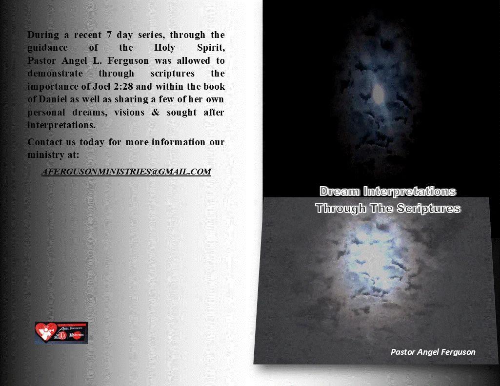 A Bible Study teaching of how God spoke through the dispensation of times. Pastor Angel Ferguson has been a teacher of the Five-Fold Minstry Gifts for over 10 years, and in 2016, she established a leadership mentoring program which expanded to Angel Ferguson Ministries, a school of Ministering and Mentoring programs that has become a help to many around the world.